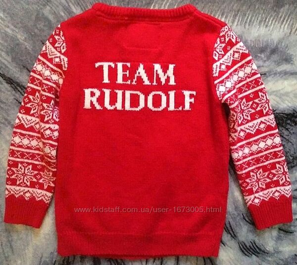 Подробное описание: Новогодний свитер с оленем и бубенчиками на рожках на 5-6 лет, фирма Rebel