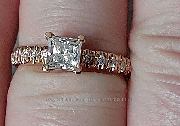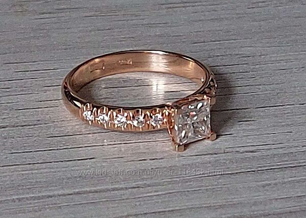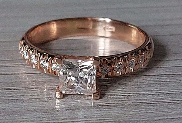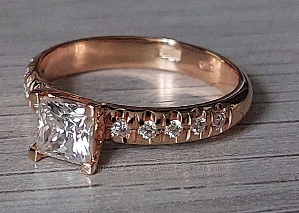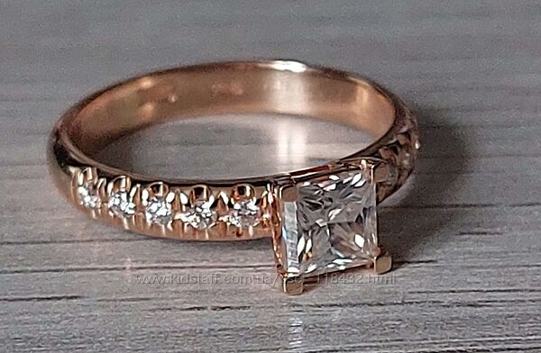 Золотое кольцо 585 проба с белыми красивыми муассанитами .Кольцо изготовлено из красного золота .