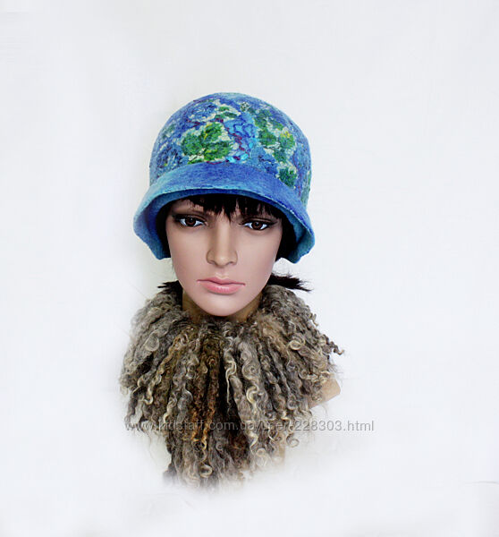 Подробное описание: Голубые цветы шляпка - авторский войлок, нуно-войлок