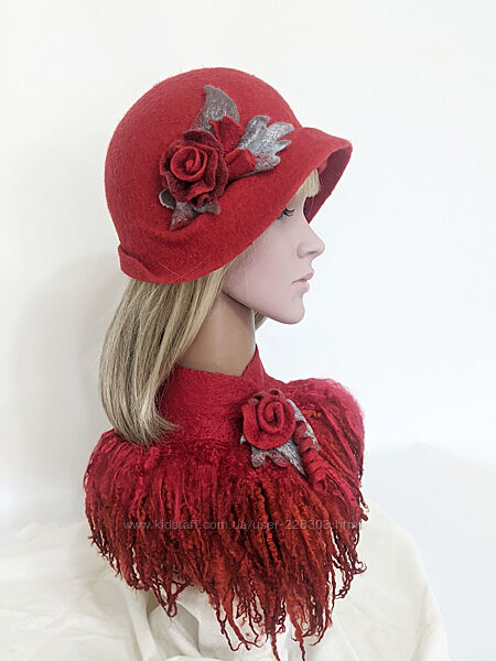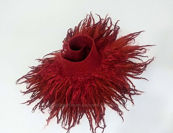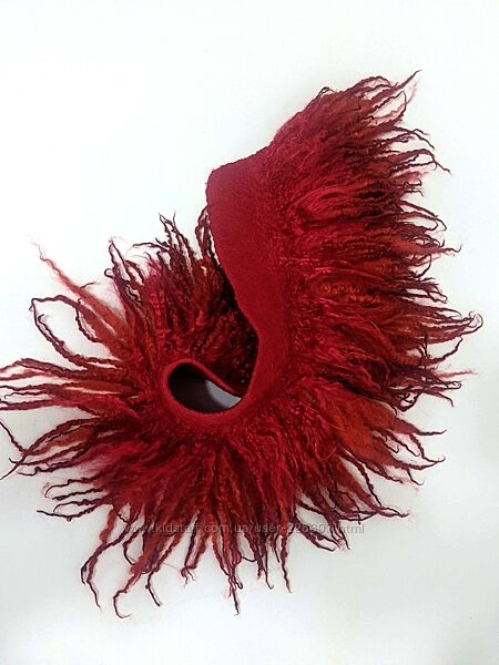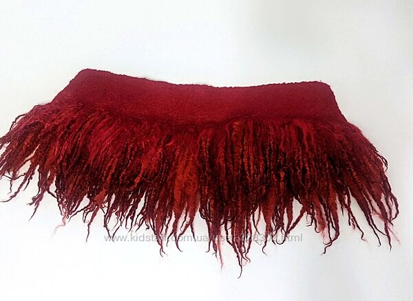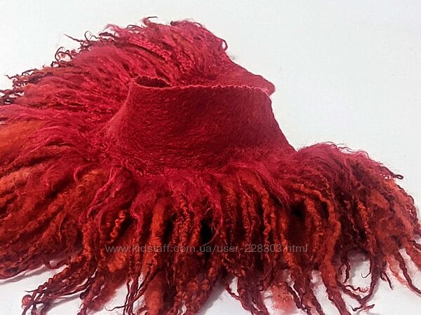 Зваляна вручну з ніжної італійської вовни і кучерів овечок Меринос (тварина не постраждала !!!), декорована волокнами віскози.