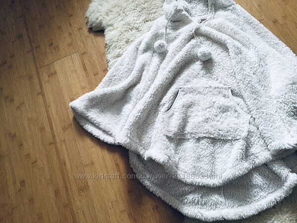 NEXT Пончо. Пухнасте. Флисовое. Мехове. S-M-L зимнее с капюшоном. есть муфт