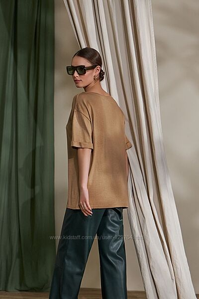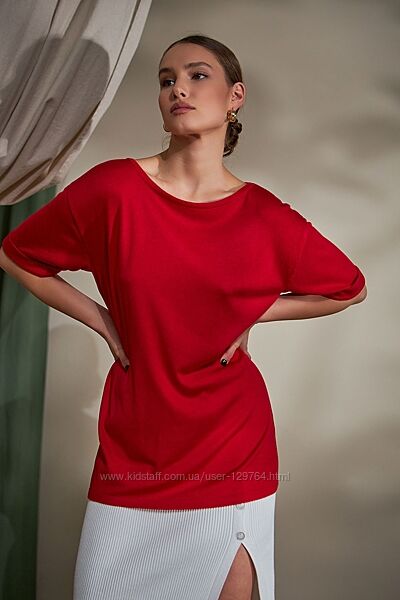 Елегантний джемпер вільного силуету виконаний з шовковистої пряжі з бавовною і віскозою.Модель має комфортний об´єм, лаконічну круглу горловину та укорочений рукав на спущеній лінії плеча.