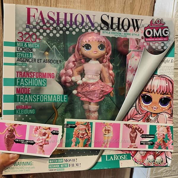 1.Набор лол омг Модная прическа Стильная Ла Роуз LOL Surprise omg Larose Нет Оригинал В наличии Пересылаю Фото реальные,в наличии 1шт LOL Surprise OMG Fashion Show Style Edition Larose 10" Fashion Doll Встречайте новый кукольный набор LOL Surprise OMG Fashion show Модная прическа Ла Роуз! Ла Роуз – стильная и яркая. Любит все розовое, пушистое и блестящее. Обожает трансформировать одежду и создавать что-то новое – посмотрите, как меняется ее одежда! И она никогда не забывает об аксессуарах! А еще она мечтает попасть на обложку модного журнала Fashion B.B., помогите ей в этом! У куклы красивые длинные волосы и яркий наряд. Помимо куклы в наборе мы найдем дополнительные наряды и аксессуары для создания нового образа – можно комбинировать и менять наряды каждый день! Кукла имеет шарнирные руки, что дает возможность придумывать еще больше интересных сценариев для игры и реализовать различные позы для фотосессий. Игра с куклой L.O.L. Surprise! развивает в ребенке креативность, воображение и умение играть. Рекомендовано для детей в возрасте от 3 лет. Кукла имеет шарнирные руки, что дает возможность придумывать еще больше интересных сценариев для игры и реализовать различные позы для фотосессий. Игра с куклой L.O.L. Surprise! развивает в ребенке креативность, воображение и умение играть. Рекомендовано для детей в возрасте от 3 лет. Комплектация и особенности: кукла ЛОЛ ОМГ Стильная Ла Роуз 25 см.манекен для создания нарядовмодные аксессуары подставка для куклыпроизводитель: MGA (США)