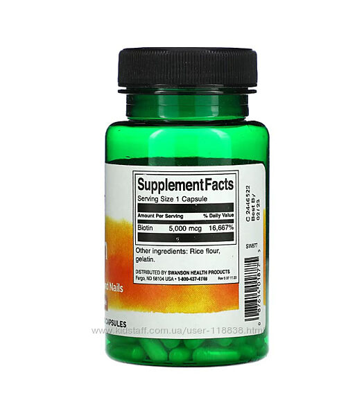 # Swanson, Биотин, 5000 мкг, 100 капсулОПИСАНИЕ: