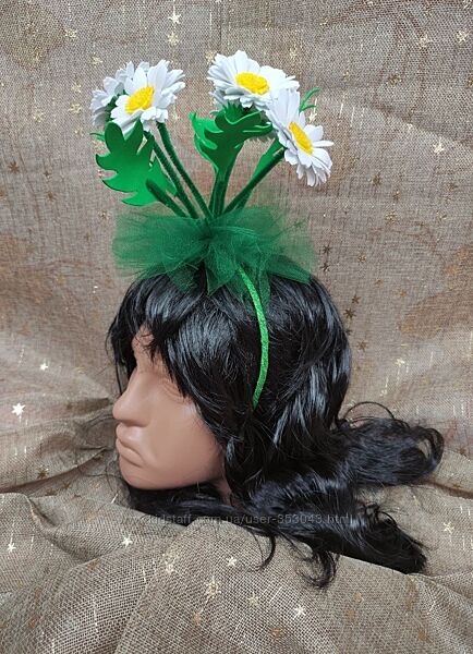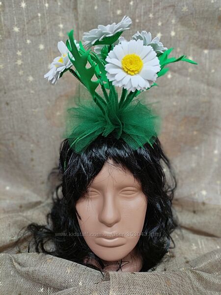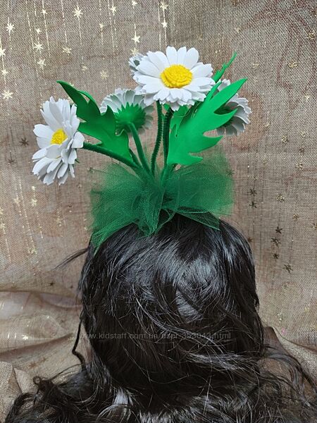 Ободок металевий обплетений стрічкою на ньому розташувалися яскраві квіточки з фоамирана. Висота квітки до 10 см Повністю ручна робота.Матеріали: Фоамиран, Фатин