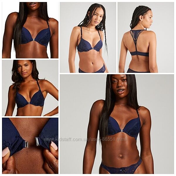 Жіночий бюстгалтер Hunkemoller Пуш-ап 80Е або 36DD ЦЕНА : 470 грн. з мереживною спинкою і застібкою спереду Висота чашки 17,5см, ширина чашки 20,5см, від кісточки до кісточки 17,5см Під грудьми 33-45см