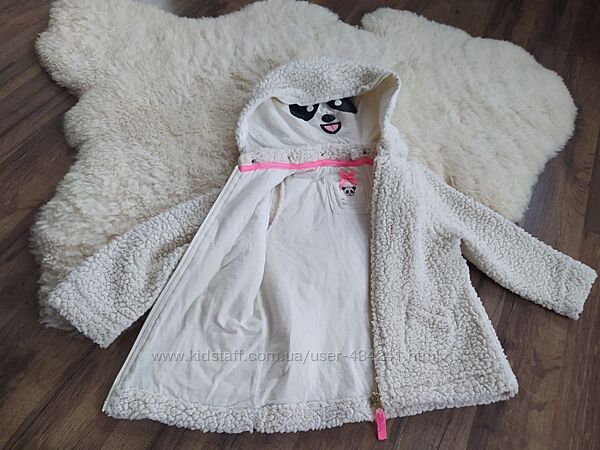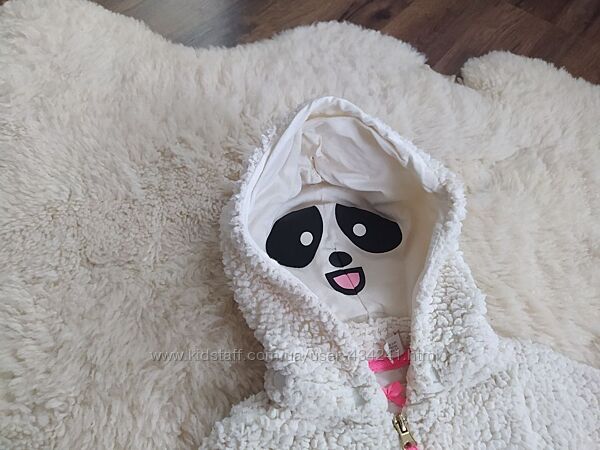 На капюшоні прикольно схована панда. Тепла і мяка.Капюшон на кнопках, можна відстібнути. Спереді дві кішені.