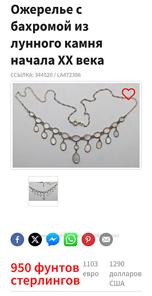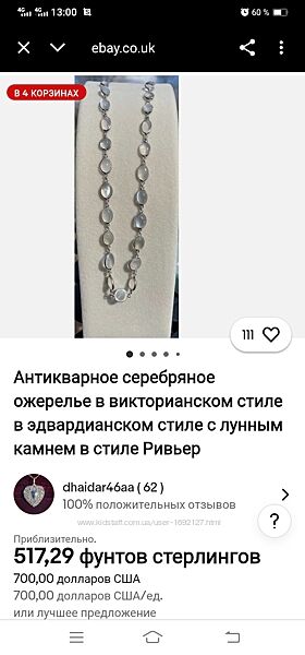 Подробное описание: Старинное антикварное колье серебро лунный камень