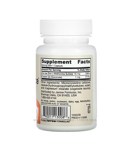 Подробное описание: Jarrow Formulas, Zinc Balance, цинк та мідь, 100 капсул