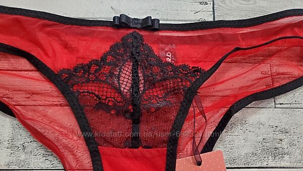 Виконані з ніжної напівпрозорої сіточки червоного кольору та вишуканого італійського мережива чорного кольору.