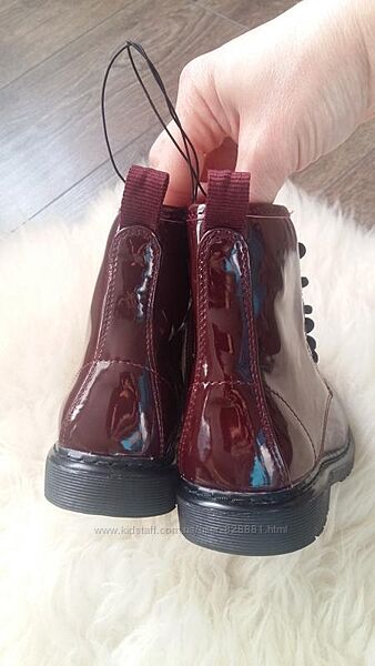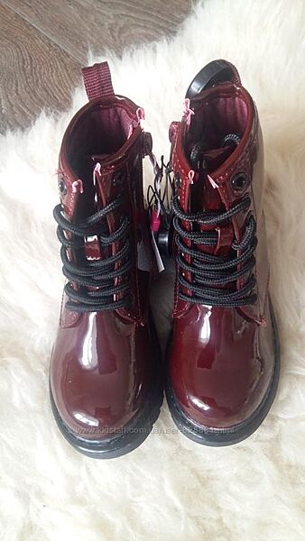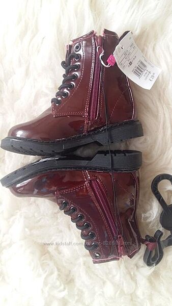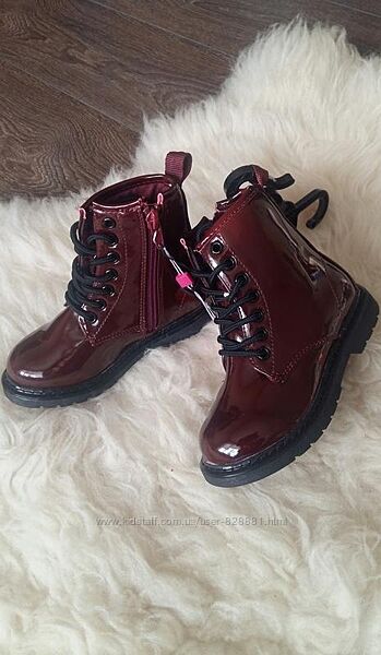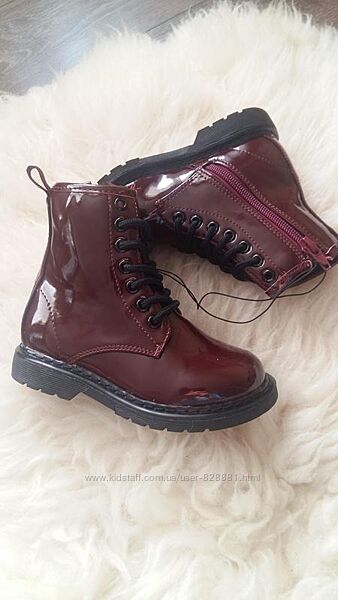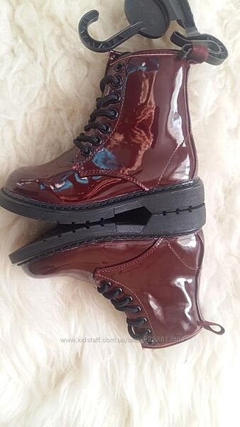 Симпатичные лаковые высокие ботиночки. Демисезон.Спереди на шнуровке, на внутренней стороне - молния.