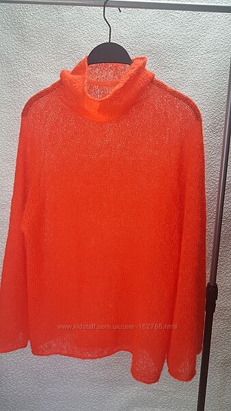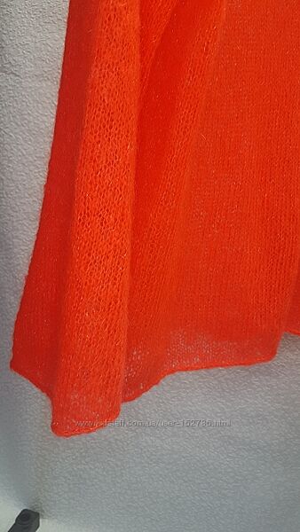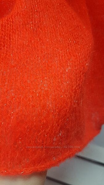 Светрик NeO зв´язан з фактурного суперкідмохеру з додаванням люрексу в тон пряжі з галограмним свяйвом, в яскраво-помаранчевому кольорі. Ворот-хомут, широкий рукав, кімоно. М´якенький, легенький, підійде для чутливої шкіри. Розмір S(44). Довжина 60см, ширина 50см. Нова річ. Упаковка+бірки. В єдиному екземплярі, без повтору.