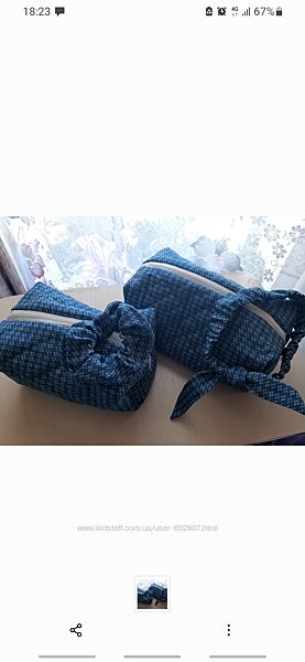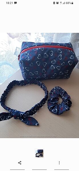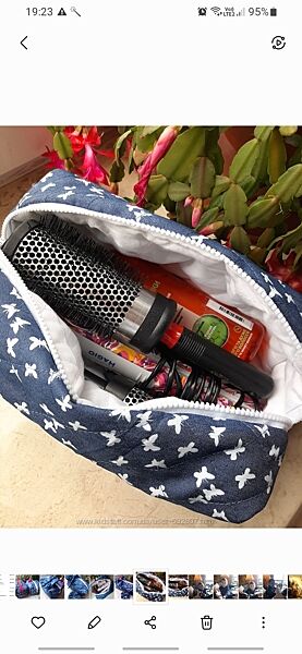 Стеганная вместительная косметичка из джинса , польского хлопка и шелка Армани, сшитая для Вас с любовью)В разных расцветках на подкладе.