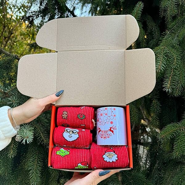 Подробное описание: Подарунковий бокс чоловічих або жіночих новорічних шкарпеток, є з чашкою