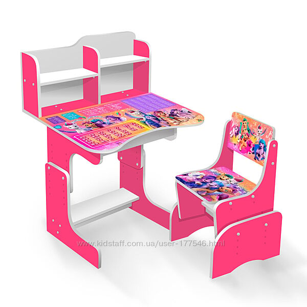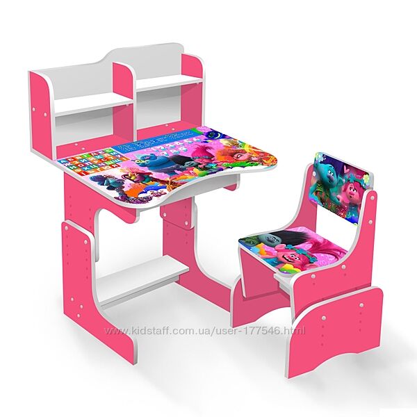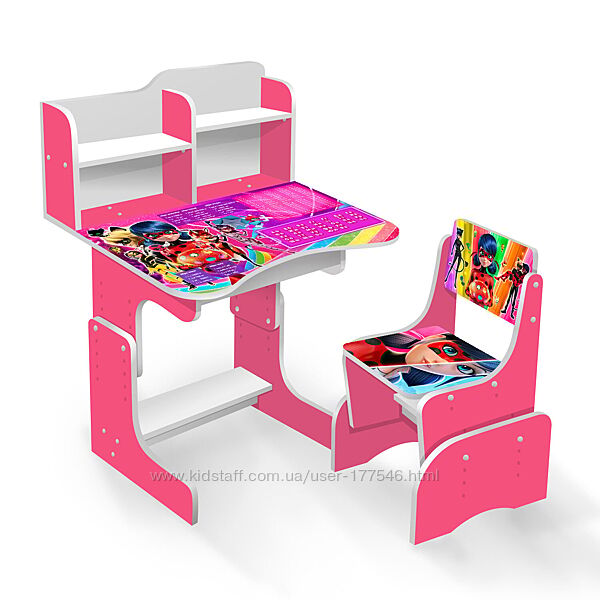 Зручна парта із зображенням героїв мультфільму сподобається вашій дитині. Сидячи за цією партою дитина зможе зосередитися на уроках, не відволікаючись на сторонні фактори. У комплекті також є стілець. Над стільницею розташовується полиця для зручного зберігання шкільного приладдя. Під стільницею вбудований просторий пенал, де вистачить місця зошитам та книжкам.