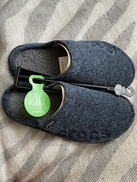 Сімейство сабо, шльопантів і ковзанок Baya поповнилося цими надзвичайно зручними тапочками в стилі мюль. Плюшева підніжка, повстяна конструкція та логотипи Crocs на зовнішній стороні верху роблять тапочки Baya надійною насолодою для зігрівання ніг.