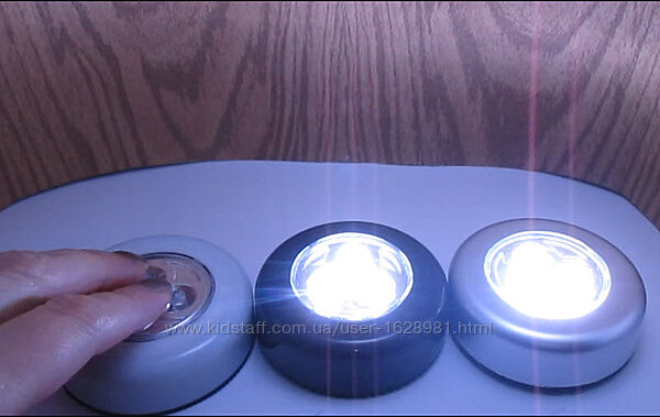 Сенсорный накладной светильник ночник ліхтар светодиодный (LED) подсветка внутри шкафа, над кухонным столом, на рабочем месте, на изголовье кровати или на тумбочке, в прихожей включается-выключается нажатием 3 цвета - черный, белый, серебристый металлик 10% от суммы идет на ЗСУ работает от 3 батареек типа ААА (микропальчик), в комплект не входят на дне двусторонний скотч - можно приклеить на поверхность легкий, светит ярко в наличии количество ограничено Видео: