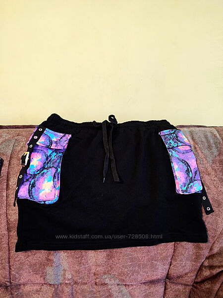 Shein. В наличии. Костюм с неоновой абстракцией. Юбка карго и двусторонни т