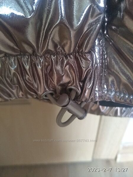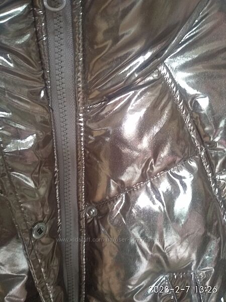 Куртка H&M. Цвет бронзовый, переливается. Теплая, лёгкая, непромокаемая. Утеплитель силикон. Размер указан европейский на бирке L, но подходит и на М. Ширина спереди на уровне подмышек 59 см, длина рукава от горловины , так как нет плечевого шва 75 см, то есть мерить нужно плечо+рукав, длина куртки от плеча до низа 70 см. Цену снизила.