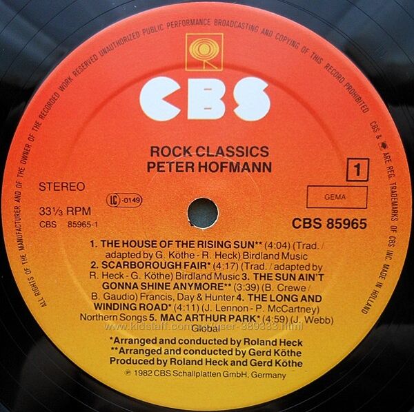 PeterHofmann - Rock Classics.Лейбл:CBS – CBS 85965.