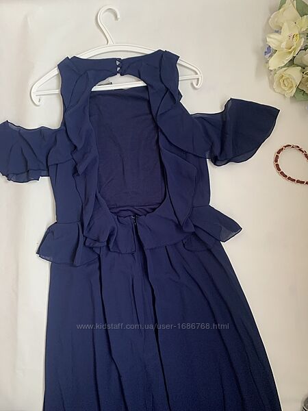 Шифонове плаття з підкладкою, спинка відкрита, ззаду блискавка, не тягнеться.Груди – 48