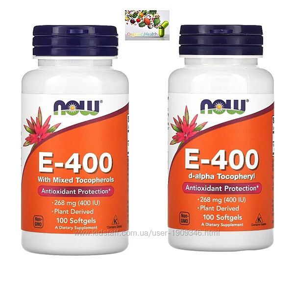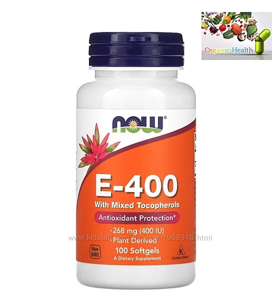 *** NOW Foods, E-400 со смешанными токоферолами, 268 мг (400 МЕ), 100 мягких таблеток- стоимость 540 грн