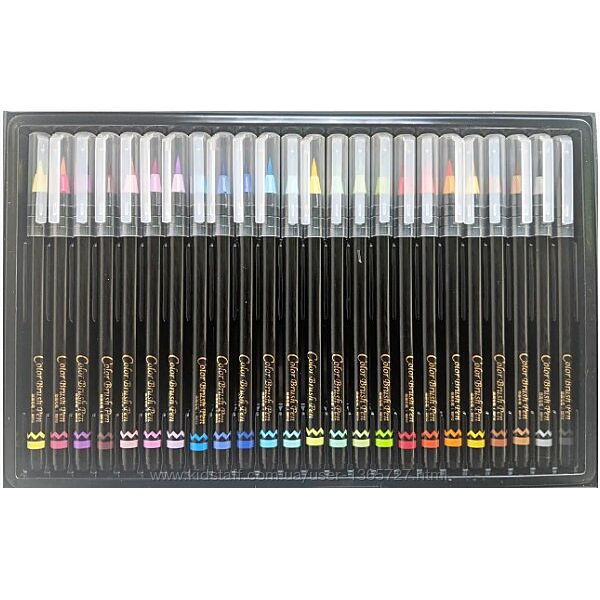 В наборе 24 кисточки, наполненные чернилами, идеально передающими свойства высококачественной акварели. Краска размывается мягко, без резких переходов.
