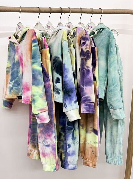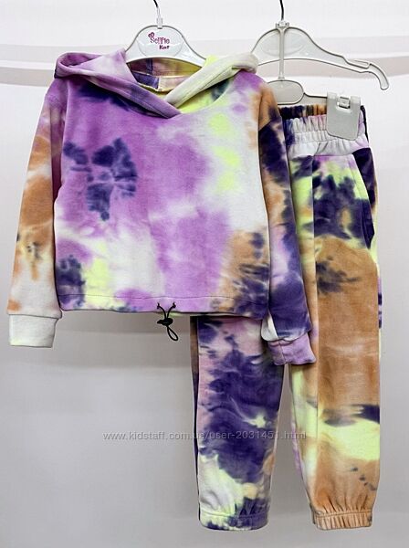 Подробное описание: Костюм двойка детский подростковый велюровый худи штаны для девочки тай дай