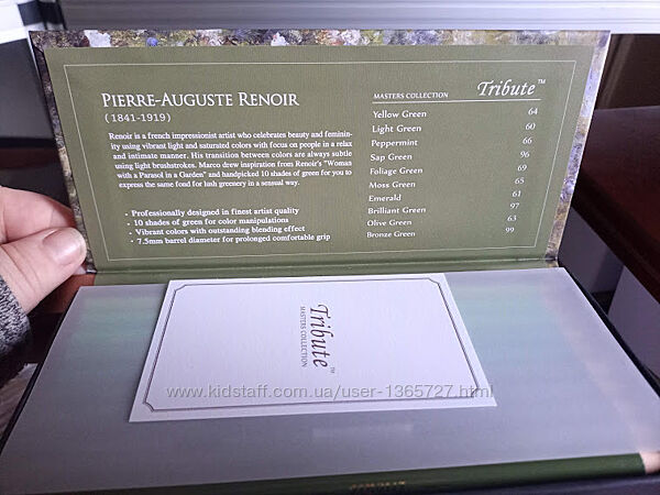 Marco Tribute Masters Collection – это серия ультра профессиональных карандашей, на создание которой вдохновило творчество великих художников таких как Ван Гог, Эшер, Моне, Матис, Ренуар, Дега, Климт и Сезанн, каждый из которых внес огромный вклад в развитие художественного искусства. Для оформления упаковки карандашей Tribute бренд Marco избрал 8 шедевров вышеупомянутых художников. Сами карандаши представляют собой высококлассный продукт, изготовленный из лучшего американского кедра. Грифель карандаша обладает недюжинными профессиональными свойствами и высокими характеристиками смешивания. Каждый карандаш – это шедевр, созданный, чтобы воздать должное мастерам художественного искусства.Подарочный набор цветных карандашей Marco Tribute Masters Collection 80 цветов.