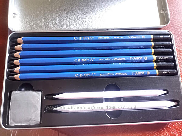 Подробное описание: Набір вугільних олівців Marco Chroma в металевому пеналі