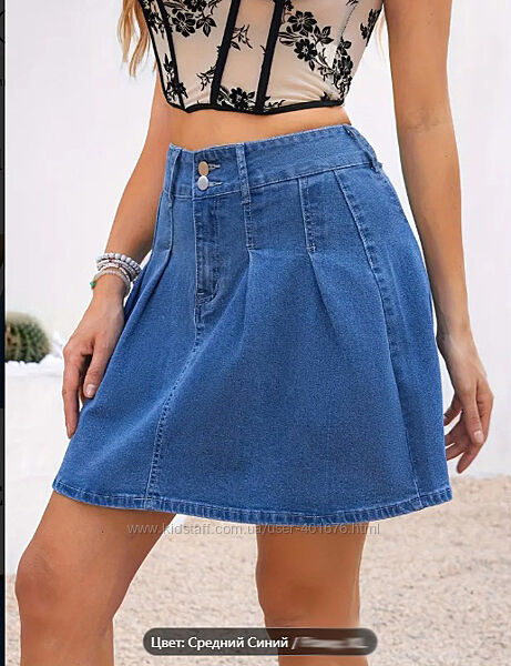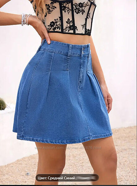 0661Джинсовая юбка со складками, ткань стрейч, хорошо тянется, впереди на молнии.