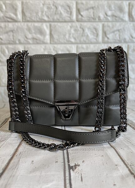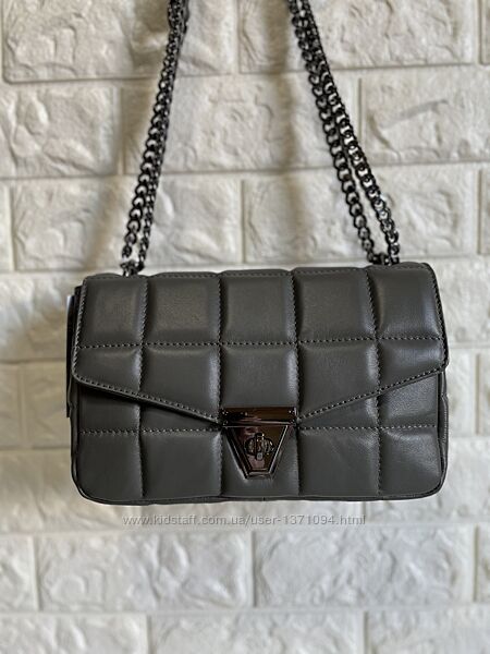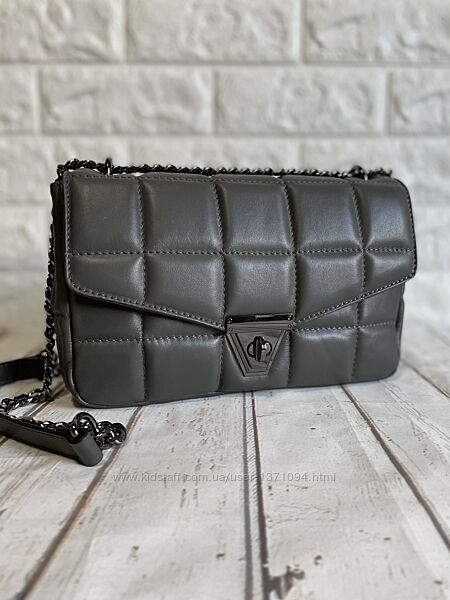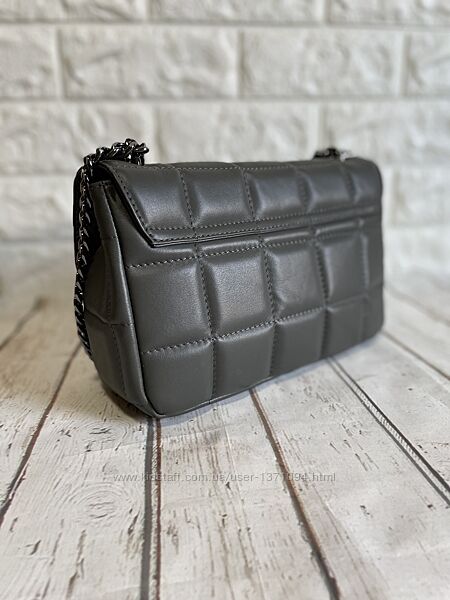 Подробное описание: Італійська шкіряна сумка середнього розміру стьогана сіра