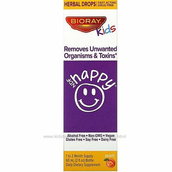 Bioray, NDF Happy, видаляє небажані мікроорганізми та токсини, для дітей, з ароматом персика, 60 млТермін придатності: Червень 2028