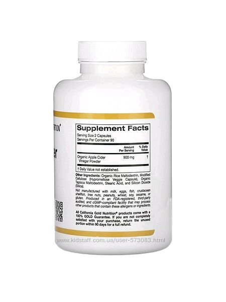 Подробное описание: Яблочный уксус - 180 капсул / California Gold Nutrition, США