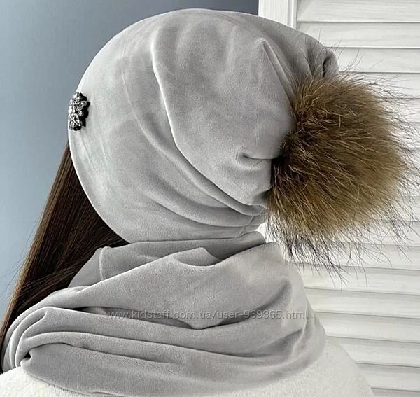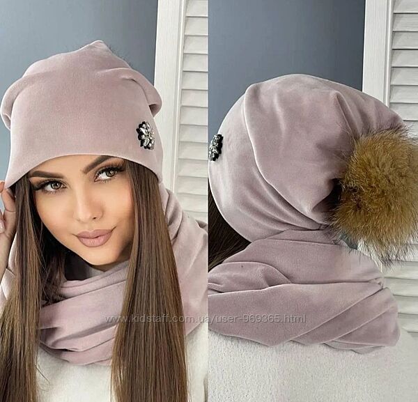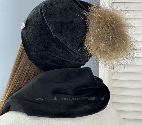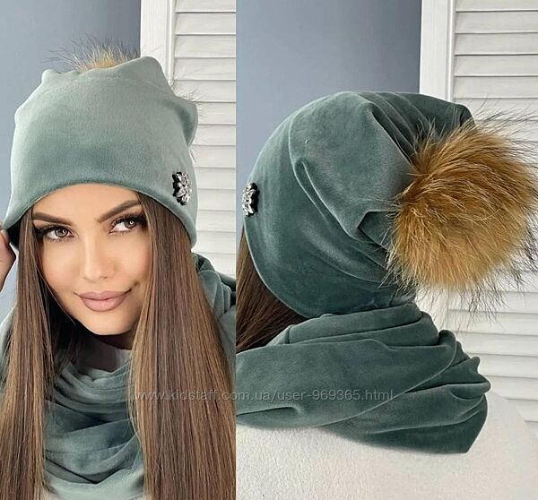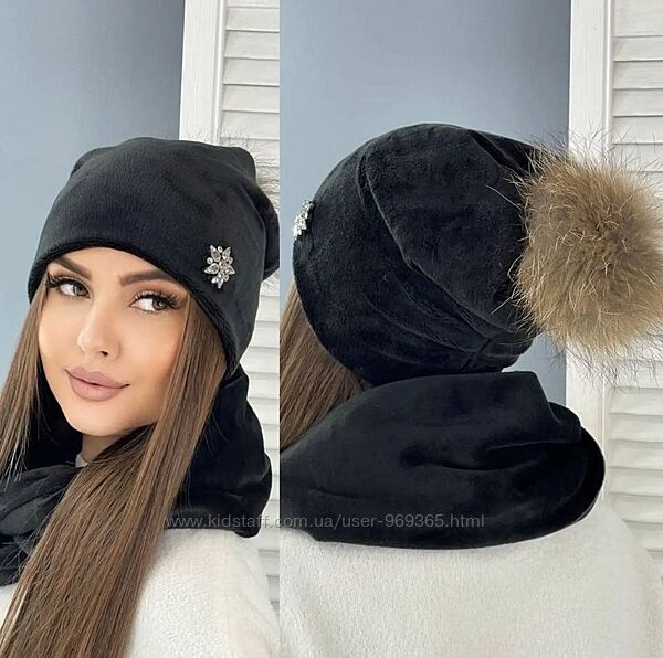 Подробное описание: Оксамитовий комплект, шапка та хомут