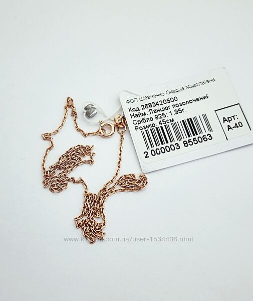 Срібло 925 проби з позолотоюдовжина 45 см.