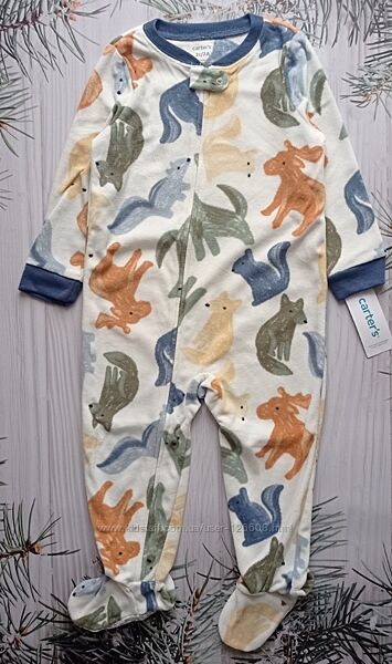 12м,18м,2т,3т,4т,5т. Человечек флисовый Животные Carters, слип картерс