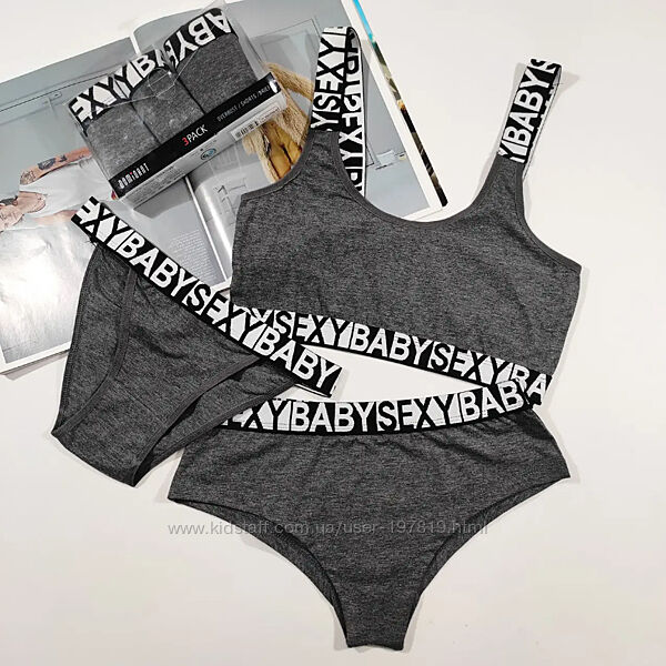Женский спортивный комплект белья тройка.Женский набор 3в1 тройка ТМ Dominant Турция. Топ-Бикини-Шорты для девочки, для девушки.