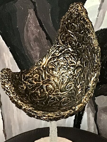 Декорирован с использованием структурной пасты, хрустальной пасты, патинирован металликом, покрыт лаком.Украсит любой интерьер. Можно использовать как декоративный элемент или для украшений.