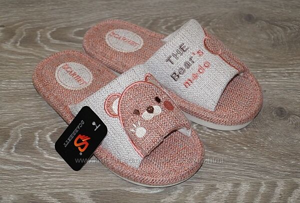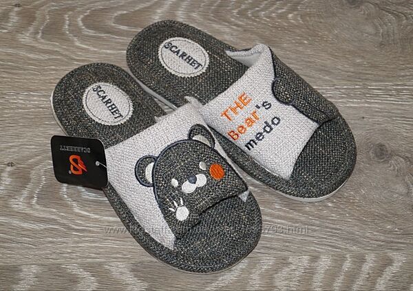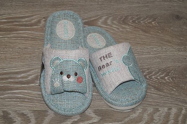 Дитячі кімнатні / домашні тапочки з аплікацією милого ведмедика.Оригінальна, гарна модель, має якісне пошиття.