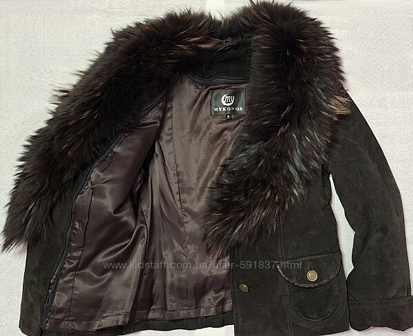 Подробное описание: Натуральний замшевий піджак, весна-зима, шоколад, натуральне хутро