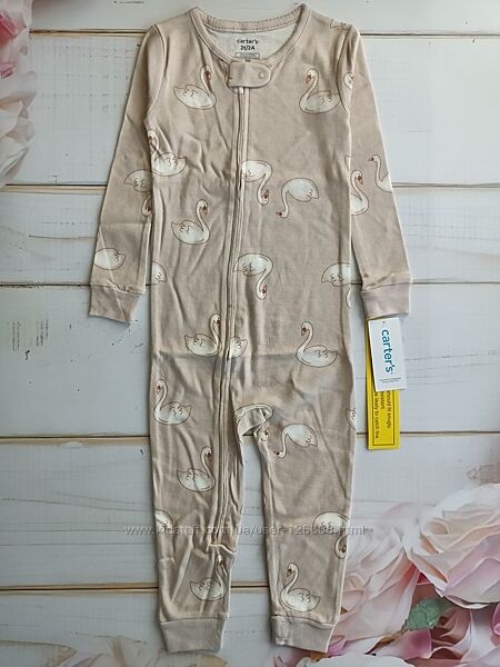 Подробное описание: 2т,4т,5т. Человечек без стоп Лебеди на молнии хлопковый Carters, слип