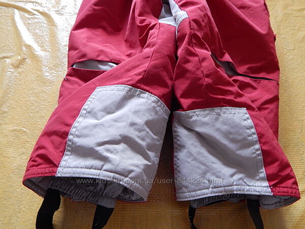 Внизу штанин снегозащита с силиконовым усилением, расстегивается вместе с низом штанин, есть штрипки для надевания на обувь