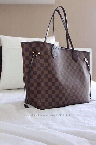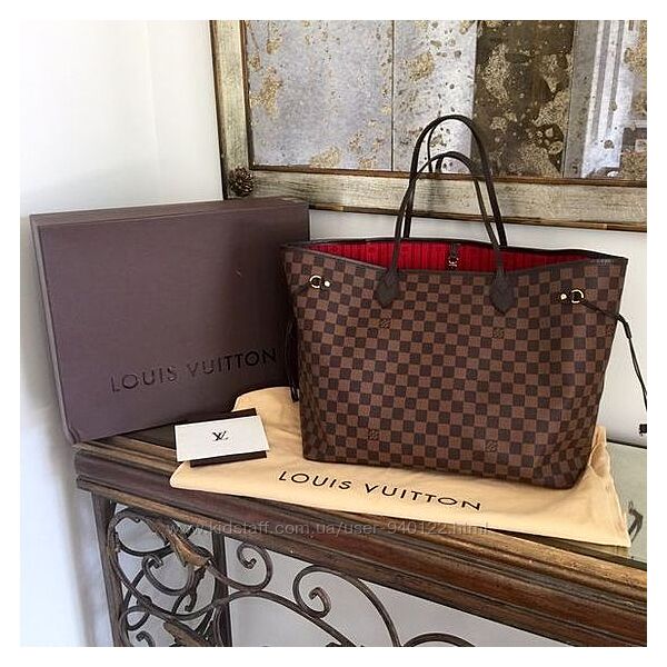 Велика брендова жіноча сумка шоппер коричнева Люкс якість Louis Vuitton NeverfullВ розмірі 47 х 32 х 16 см Матеріал Канва