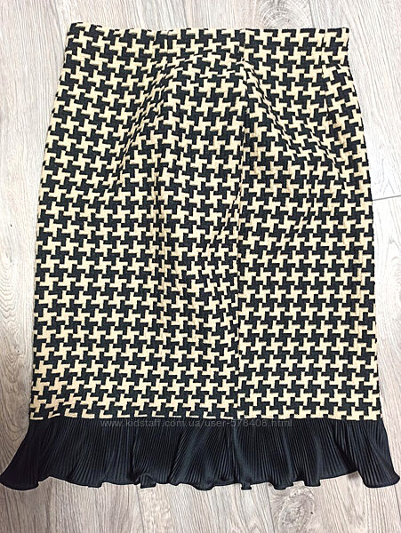 Чудова спідниця із щільного теплого трикотажу, оборка плісирована. Особистий гардероб, стан нової (без бумажної бірки - купила, але не вдягала жодного разу...)Розмір 18: довжина 69 см; Пот 44-54 см вільно тягнеться); Поб 5-62 см (вільно тягнеться)