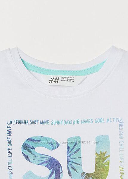 Оригинальная футболка с принтом от бренда H&M разм. 98-104(2-4года)№ 0782592006-02
