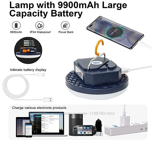 Водонепроникна aкумуляторна LED-лампа, заряджається за допомогою USB-кабеля.Може виступати як павербанк!