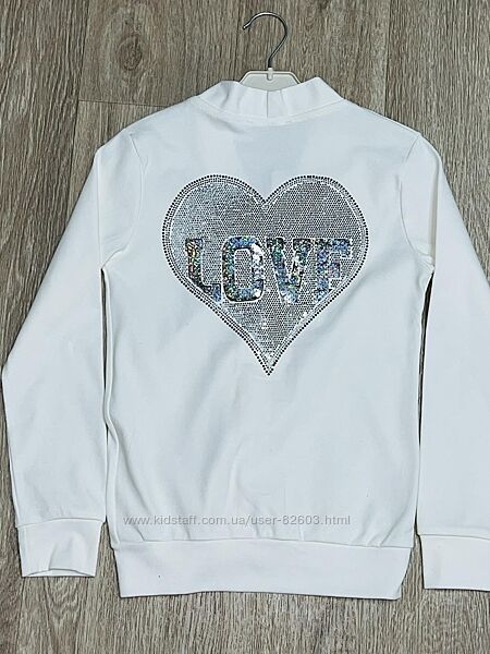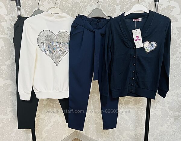 В наличии темно синяя и белая кофточка, подберем любые штанишки или лосины , красивое сердце паетки на спине