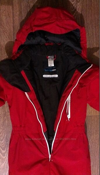 Низ штанин и рукава на резинке, есть 2 внешних кармана на молнии (в т.ч. для скипасса). Талия на резинке. Капюшон глубокий, хорошо закрывающий, воротник высокий. Ткань очень прочная.