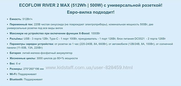 Батарея охлаждаемая,литий-железо-фосфатная 512 ватт/час,3000 циклов заряд -разряд(срок службы10+ лет)Ток220v,12v, выходы: универсальные розетки,DC,USB, Type -C, прикуриватель автомобильный и входы XT60,C14.Чистый синус,подходит для газовых котлов.Работает как бесперебойник.